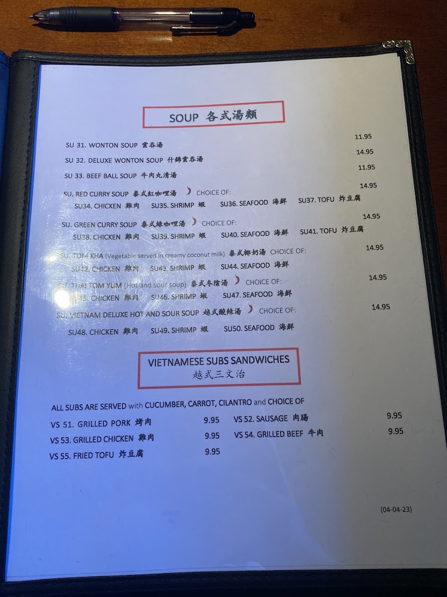 ................................CA$16.00CHOICE OF: SU34. CHICKEN ; SU35. SHRIMP ; SU36. SEAFOOD ; SU37. TOFU