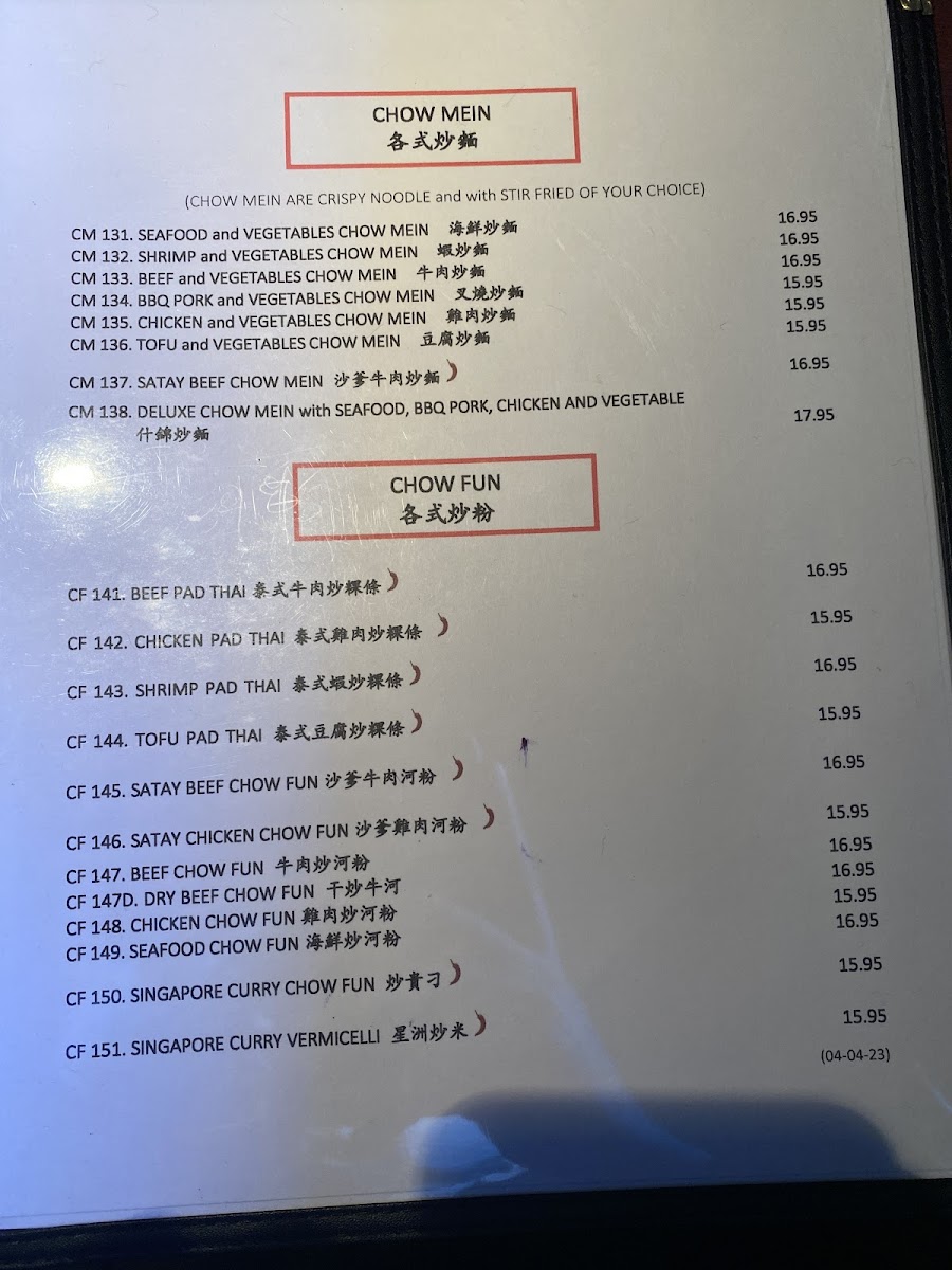 ................................CA$18.00CM 138. DELUXE CHOW MEIN with SEAFOOD, BBQ PORK, CHICKEN AND VEGETABLE