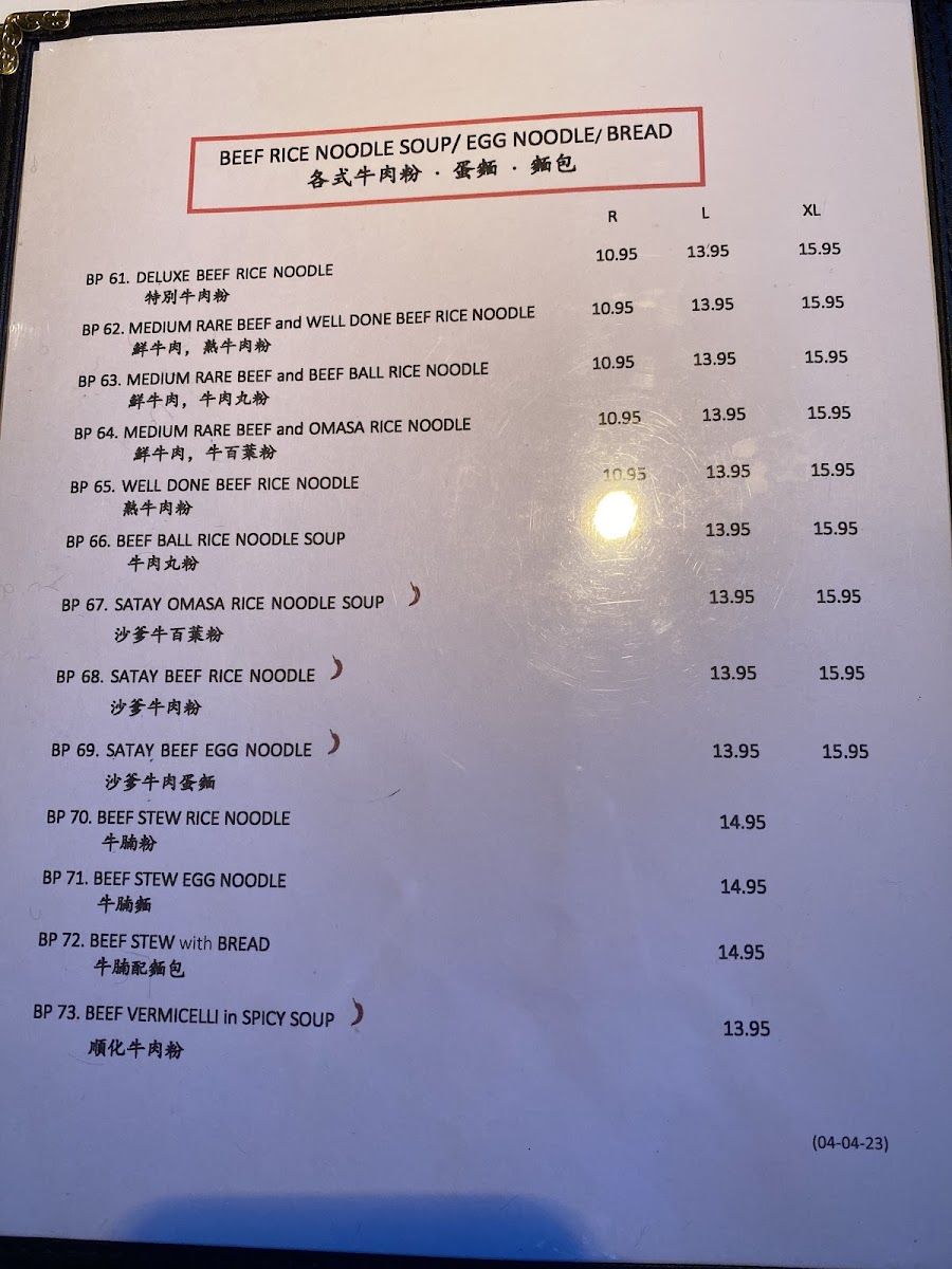 ................................CA$10.50BP 61. DELUXE BEEF RICE NOODLE