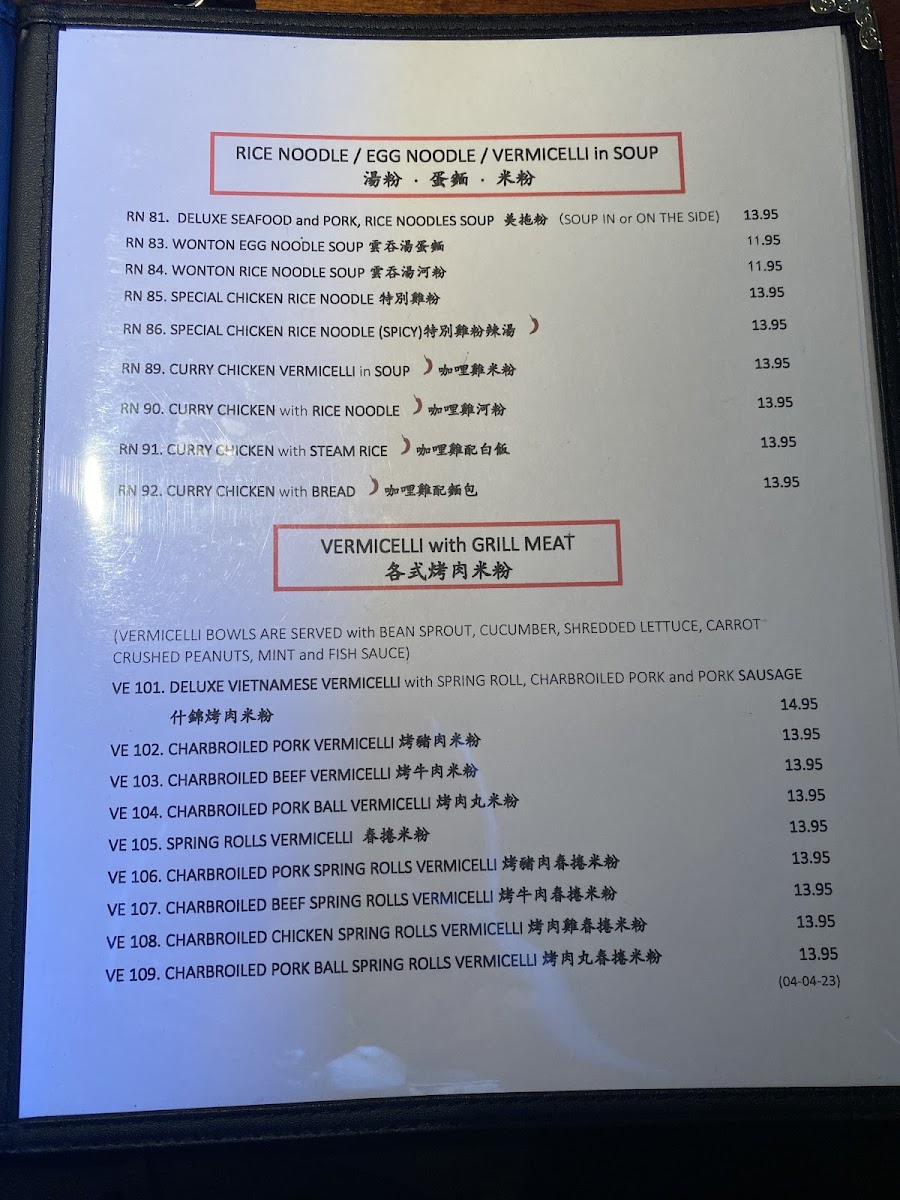 ................................CA$14.75RN 89. CURRY CHICKEN VERMICELLI in SOUP