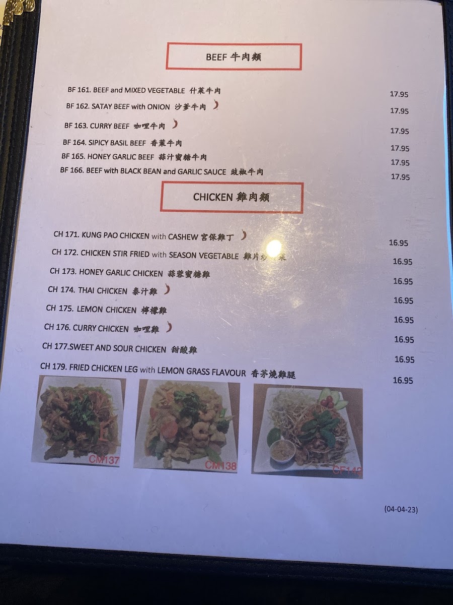 ................................CA$19.00BF 164. SIPICY BASIL BEEF